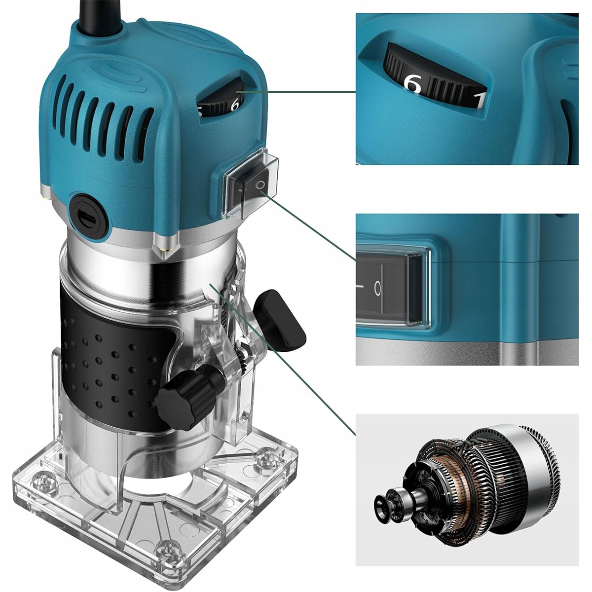 ✅【Высококачественные материалы】Столярно-фрезерный станок YOUKUKE изготовлен из высококачественного алюминия и пластика, что делает его прочным и долговечным. Его цвет классический павлиньего синего цвета. Он маленький, легкий и портативный. Двигатель мощностью 800 Вт из чистой меди обеспечивает надежную и стабильную работу. Диаметр ручки составляет 6,35 мм/1/4 дюйма.