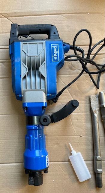 Отбойный молоток Scheppach AB1900, 1900 Вт, ударная сила 60 джоулей и 2000 ударов в минуту, – настоящий силовой гигант, легко справляющийся со стенами и бетоном, весом всего 16,5 кг.