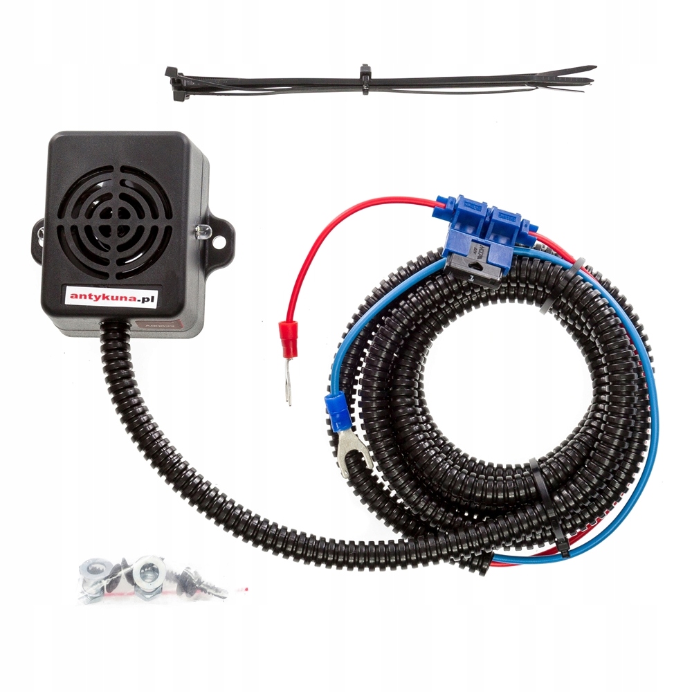 Установка данного отпугивателя предельно проста – достаточно установить его в моторном отсеке, направить громкоговоритель в сторону пространства, из которого куница добирается до двигатель и подключите его к клеммам аккумулятора или токовым выходам.