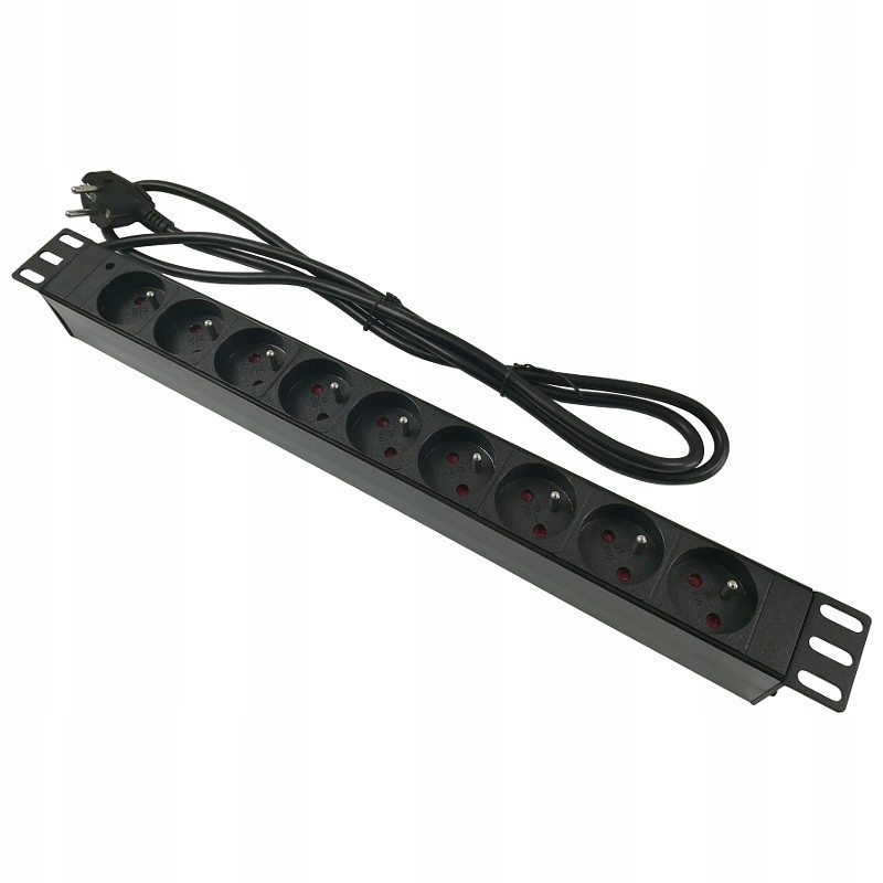 Удлинитель PDU (блок распределения питания) предназначен для установки в стандартные 19-дюймовые стойки. Он имеет 9 стандартных розеток NFC61-314 и вилку DIN 49441 с кабелем длиной 3 м (стандарт, используемый в Польше).