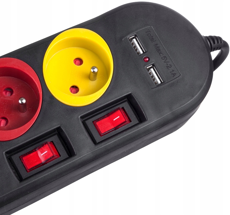 Powering Strip из 4 розеток 2XUSB 1,5 млн. Красочные розетки