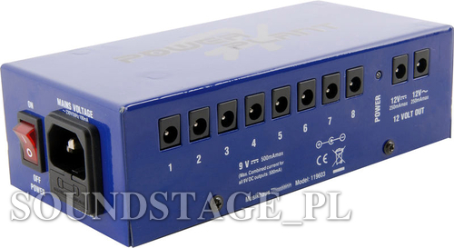 Блок питания оснащен общим выключателем питания, который позволяет одновременно включать и выключать все активные эффекты. В блок питания также входит полный набор соединительных кабелей длиной 50 см и 30 см, а также кабелей с обратной полярностью.