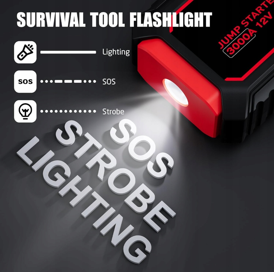 Povasee PowerBank 3000A Booster 12V LED USB Start Cables