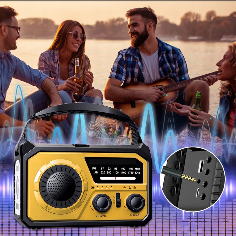 🏆 Аварийное радио с аккумулятором емкостью 16 000 мАч, Bluetooth 5.3 и солнечной зарядкой и заводной рукояткой — ваш надежный спутник в отпуске и в любой чрезвычайной ситуации!