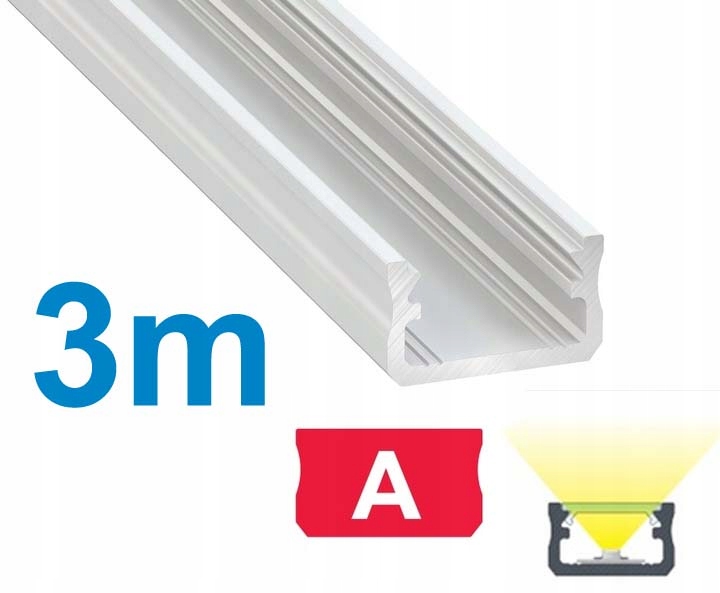 ПОВЕРХНИЙ АЛЮМІНІЄВИЙ ПРОФІЛЬ тип А, БІЛИЙ для світлодіодних стрічок 3м
