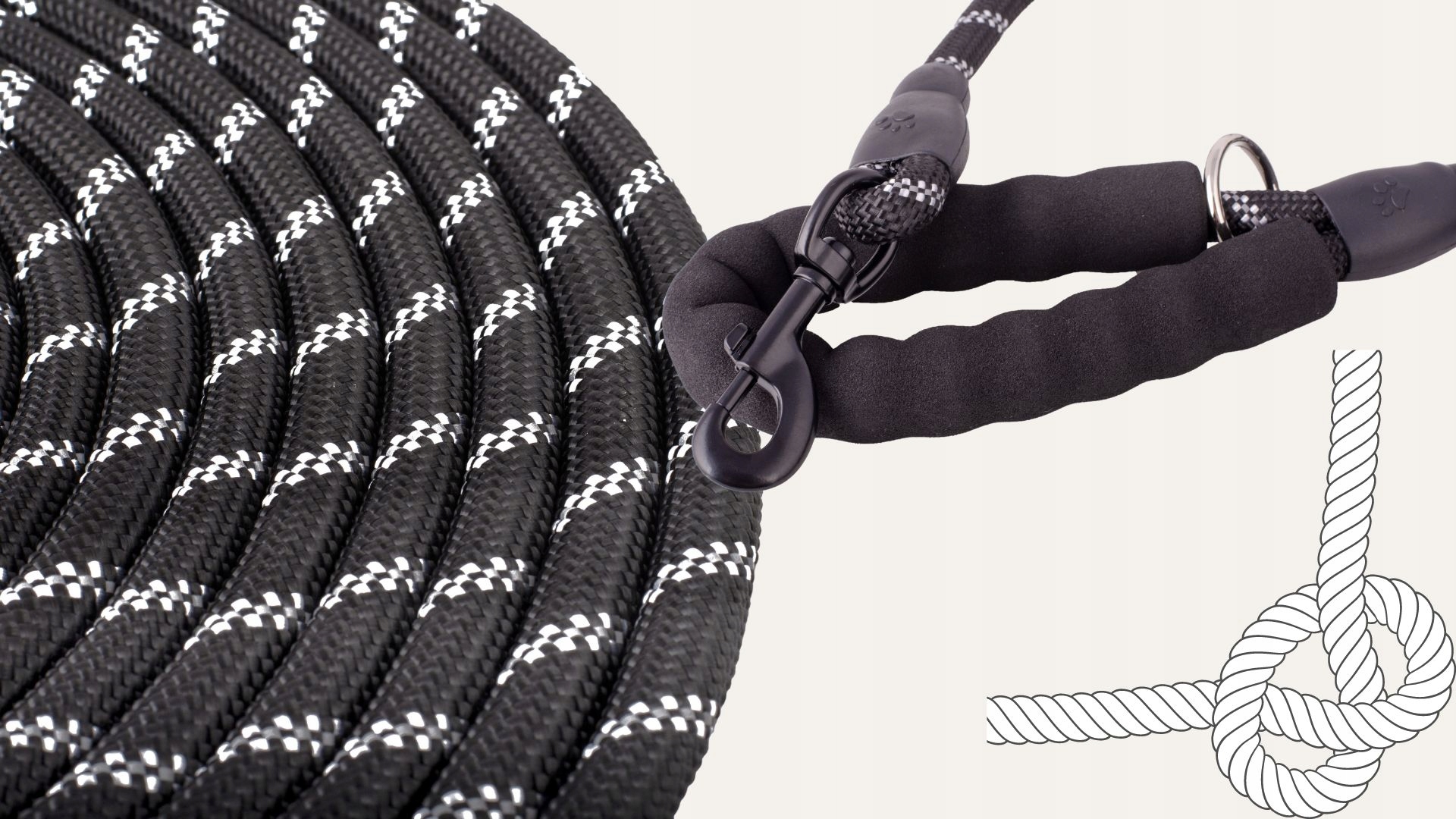 - ✅Изготовлен из прочного материала - С этим поводком вы можете быть уверены, что собака не сломается и, следовательно, не подвергнет себя опасности. Толщина веревки 1,1 см выдерживает даже сильные рывки крупных собак весом до 80 кг.