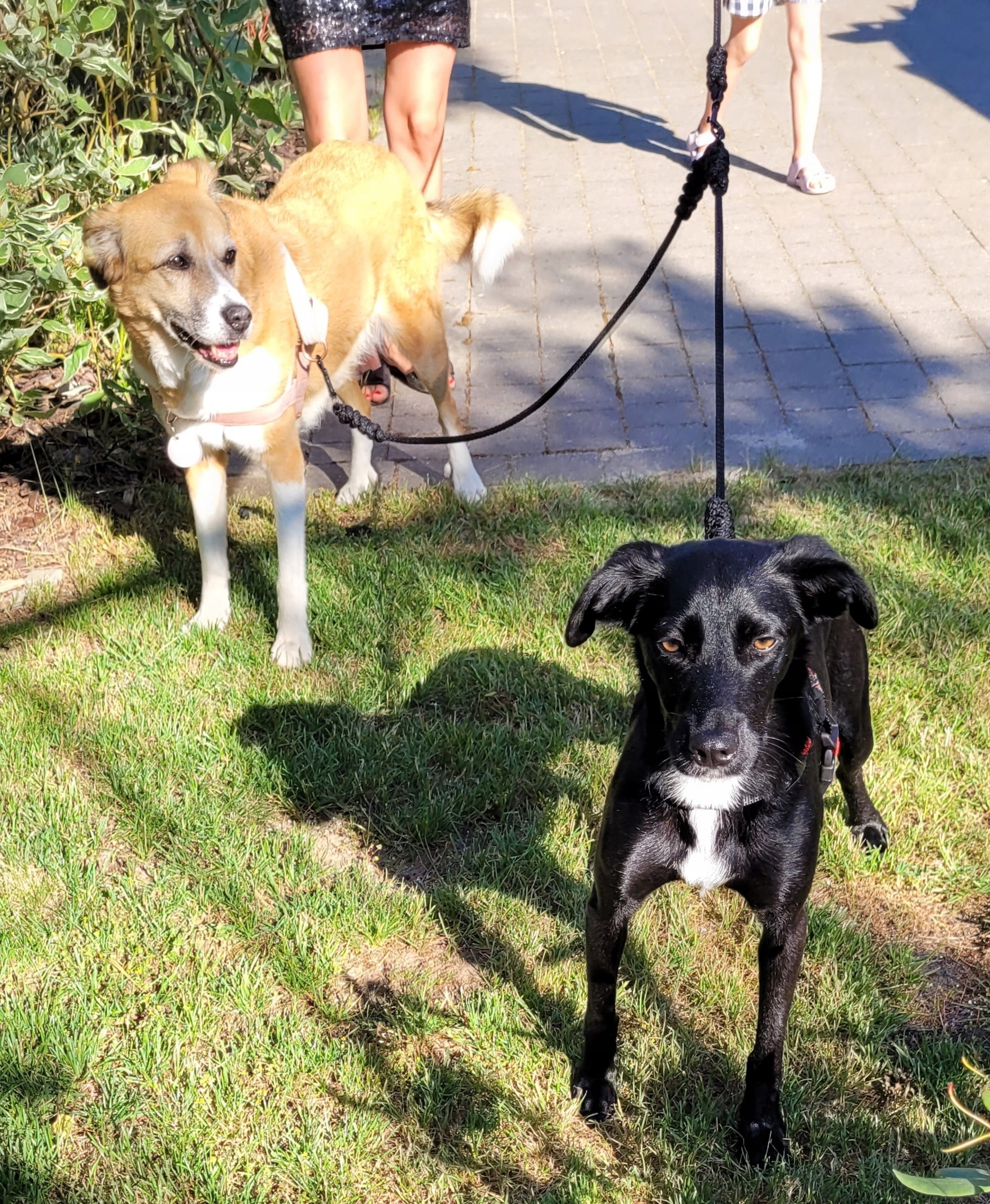 На фотографиях выше показаны две собаки, соединенные перегородкой размера М (светлая собака весит около 20 кг, черная 11 кг).