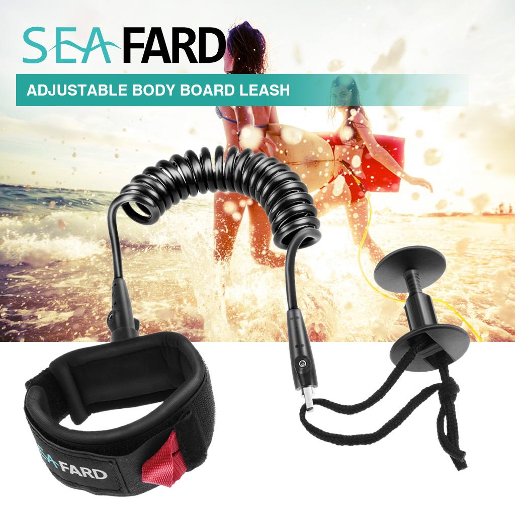 Поводок для бодиборда длиной 5 футов с убирающимся шнуром премиум-класса, оснащенным вертлюжками, предотвращающими запутывание и наматывание поводка на плечи.