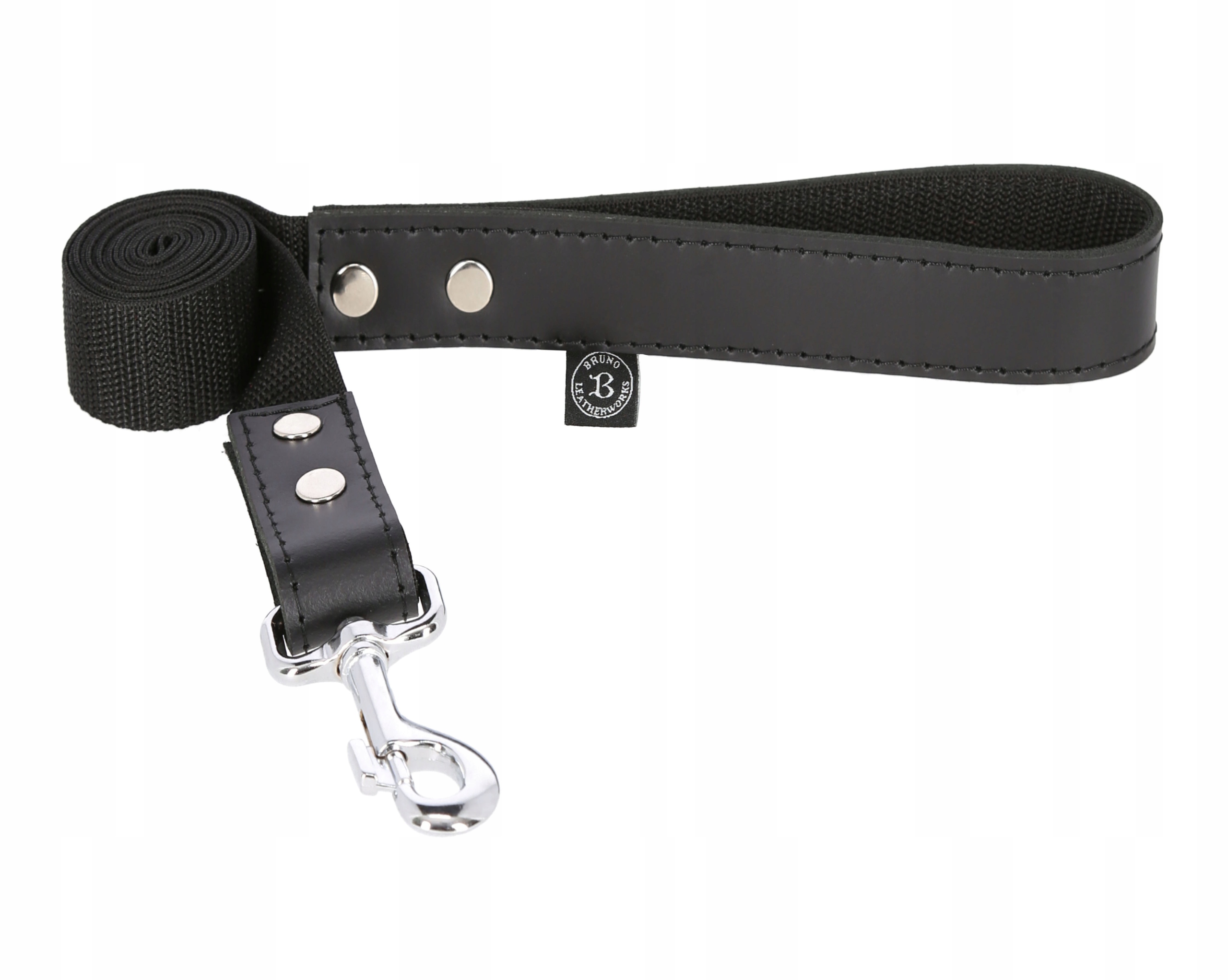 Поводок для собаки из полиэфирной ленты с кожаной фурнитурой.
