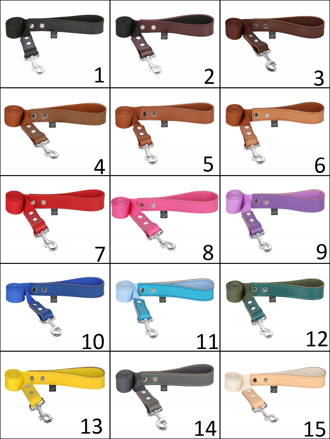 Поводок для собаки из полиэфирной ленты с кожаной фурнитурой.