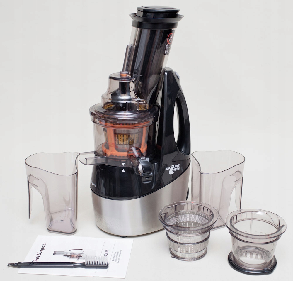 ЭТО САМАЯ НОВАЯ МОДЕЛЬ СРЕДИ СОКОЖИЛЬНЫХ МАШИН ЗАРЕГИСТРИРОВАННОЙ КОМПАНИИ GERMIN.MAX SLOW JUICE System — ИДЕАЛЬНОЕ УСТРОЙСТВО ДЛЯ ПРИГОТОВЛЕНИЯ СВЕЖИХ, ПОЛНОСТЬЮ НАТУРАЛЬНЫХ И БЕЗ ИСКУССТВЕННЫХ ДОБАВОК. БОЛЬШОЕ ВПУСКНОЕ ОТВЕРСТИЕ ПОЗВОЛЯЕТ ПРИГОТОВИТЬ ЛЮБИМЫЕ СОКИ НАМНОГО БЫСТРЕЕ. ЭТО ОПРЕДЕЛЕННО ЛУЧШЕ, ЧЕМ ТРАДИЦИОННАЯ СОКОВЫЖИМКА. ПОДХОДИТ ДЛЯ ЛИСТОВЫХ ОВОЩЕЙ И ТРАВ, С КОТОРЫМИ НЕ СПРАВЛЯЕТСЯ ТРАДИЦИОННАЯ СОКОВЫЖИМАЛЬНАЯ МАШИНА. ОН НЕ РЕЗКАЕТ И НЕ ИЗМЕЛЕТ ПРОДУКТЫ С ПОМОЩЬЮ БЫСТРО ВРАЩАЮЩИХСЯ ЛЕЗВИЙ, ЧТО ВЫЗЫВАЕТ ПОВЫШЕНИЕ ТЕМПЕРАТУРЫ СОЗДАВАЕМОГО СОКА И ПОТЕРЮ ВИТАМИНОВ, А МЕДЛЕННО ИЗМЕЛЬЧАЕТ И ИЗМЕЛЬЧАЕТ ФРУКТЫ, ОВОЩИ И ТРАВЫ, А ЗАТЕМ ПРОПУСКИВАЕТ МЯКОТЬ ЧЕРЕЗ ПЕРЕДАЧУ. БЛАГОДАРЯ ТАКИМ ПРОЦЕССУ, В ПОЛУЧЕННОМ СОКЕ СОХРАНЯЮТСЯ ВСЕ ЖИВОТНЫЕ И ЦЕННЫЕ ИНГРЕДИЕНТЫ. ВЫЖИМНЫЙ СОК БОЛЕЕ ГУСТЫЙ И МЕНЕЕ ПРОЗРАЧНЫЙ, БОГАТЫЙ ФЕРМЕНТАМИ, ВИТАМИНАМИ И МИНЕРАЛАМИ.