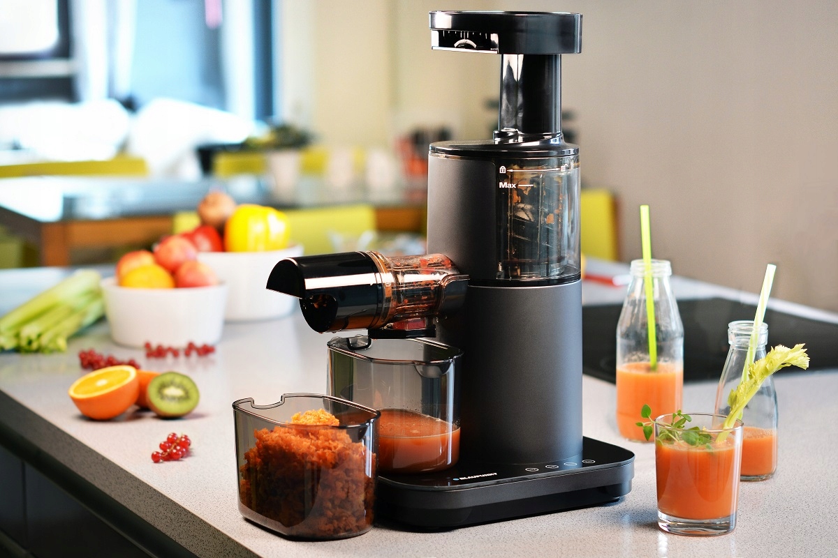 Сенсорная панель управления, 4 режима работы (обычный, медленный, реверс, очистка), блокировка капания сока и предельно тихая работа (ниже 65 дБ) позволяют комфортно пользоваться устройством.