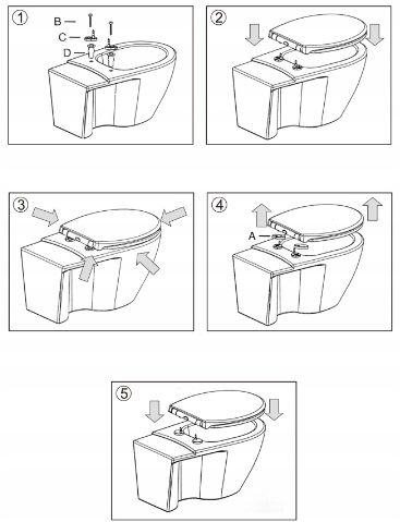 easy Clean System , позволяет немедленно разобрать доску для очистки туалета . Просто нажмите кнопки и спешите доску. Это решение позволяет легко и быстро позаботиться о гигиене туалета , не теряя времени и не участвуя в сложном процессе демонтажа каждый раз, когда мы хотим мыть туалет