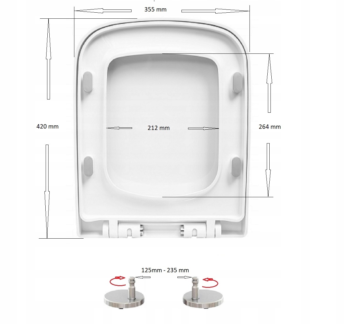 - медленно закрывающее туалет, прямоугольная форма, с легким удалением, простым в использовании и с антибактериальными свойствами, изготовленными из полипропилена.
