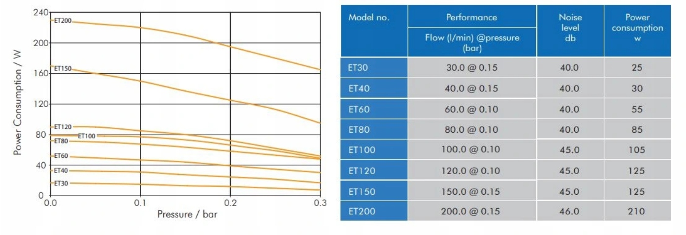 - 100л/мин при 0,1 бар - нормальные рабочие параметры