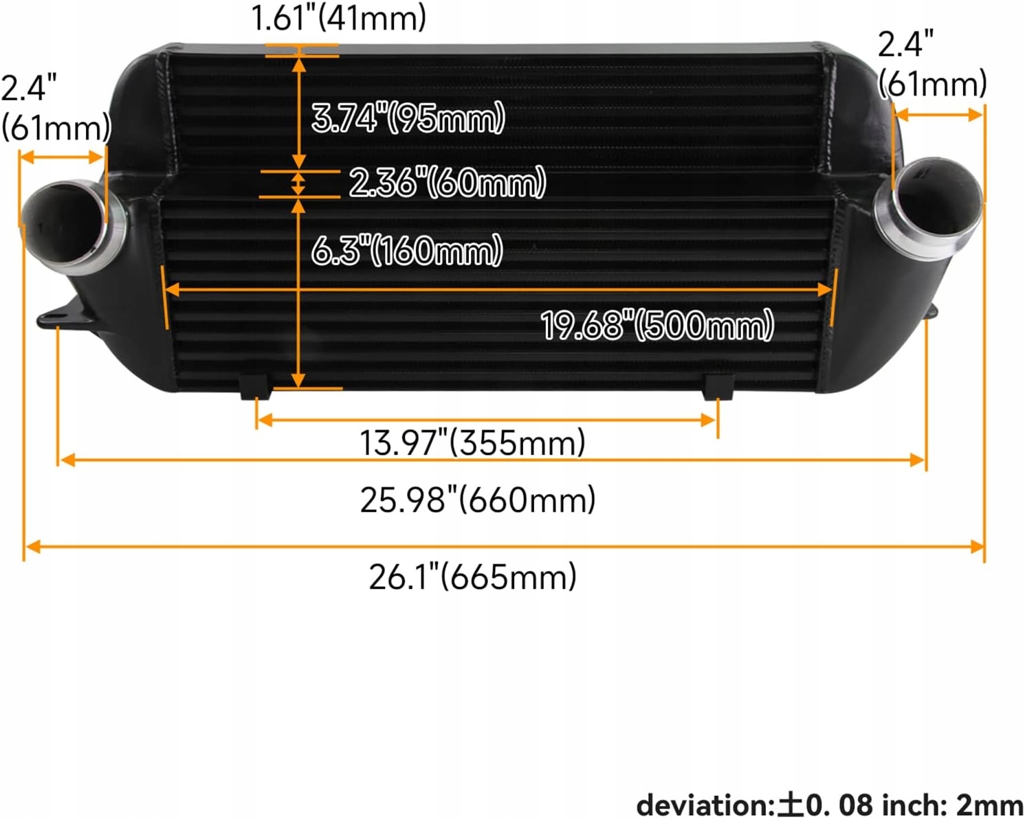 Этот интеркулер имеет увеличенную на 83 % фронтальную поверхность и на 62 % больший объем по сравнению со стандартным интеркулером.