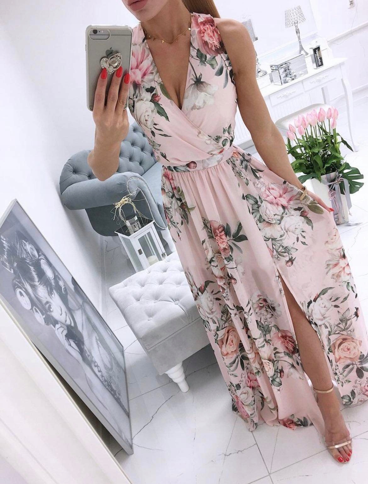 ДЛИННОЕ КОКТЕЙЛЬНОЕ ПЛАТЬЕ МАКСИ С ЦВЕТАМИ