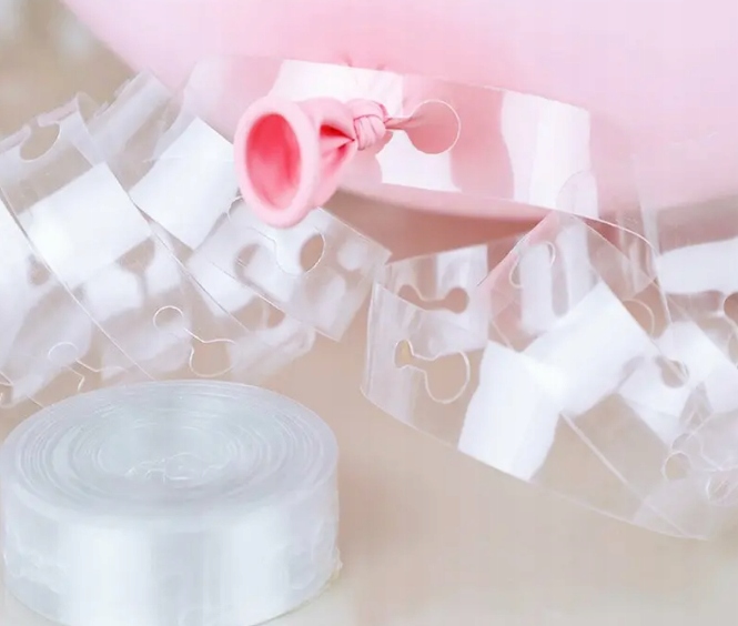 Прозрачная, прочная лента, идеально подходит для изготовления эффектных гирляндов и фигур из воздушных шаров.
