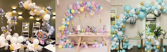 Просто соедините воздушные шары с ним, а затем сформируйте гирлянду и прикрепите ее к стене, потолоку или полю в случае надуваемого воздушного гелия гелия.