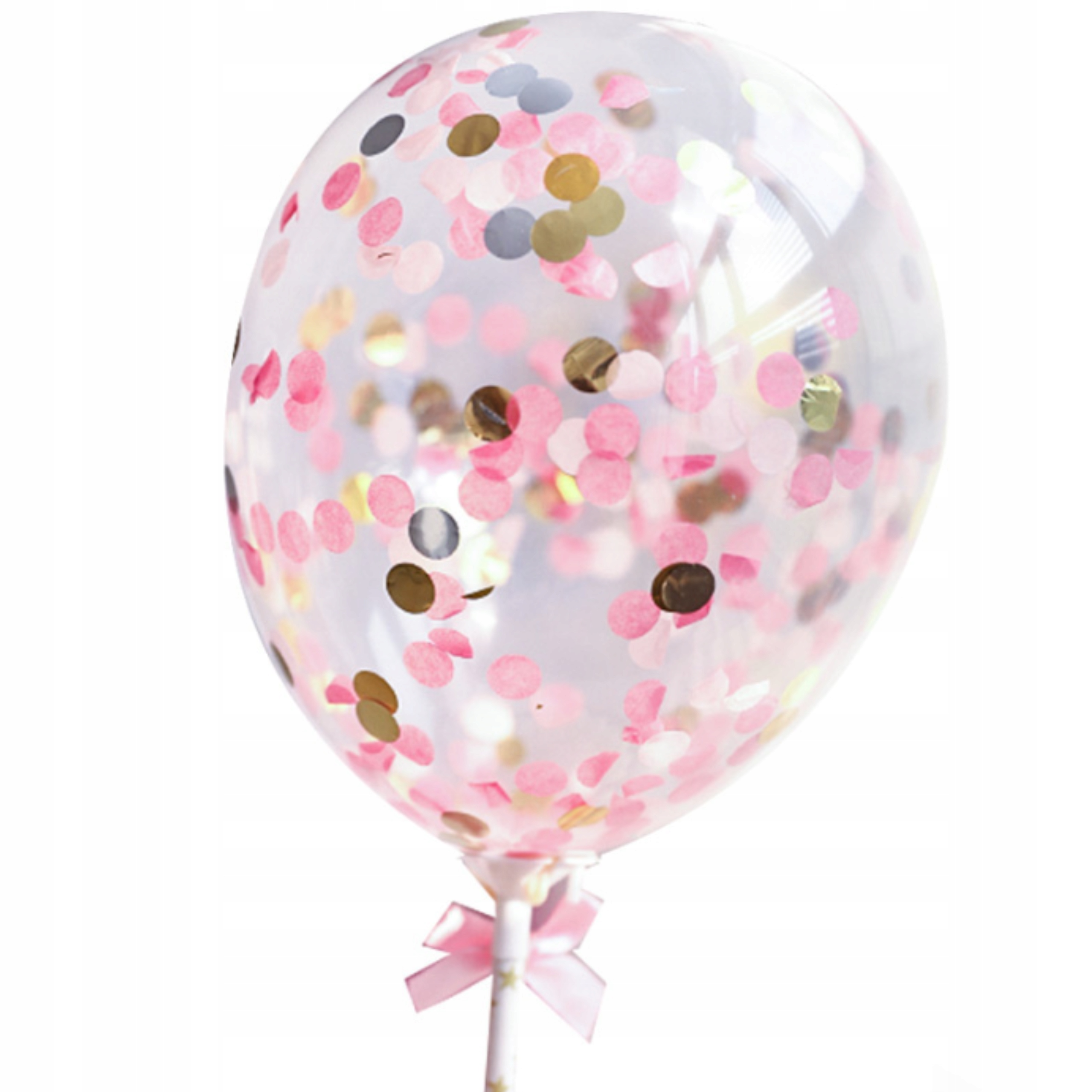 ✅ ТОПЕР ДЛЯ ТОРТА РОЗОВЫЙ ШАР С КОНФЕТТИ