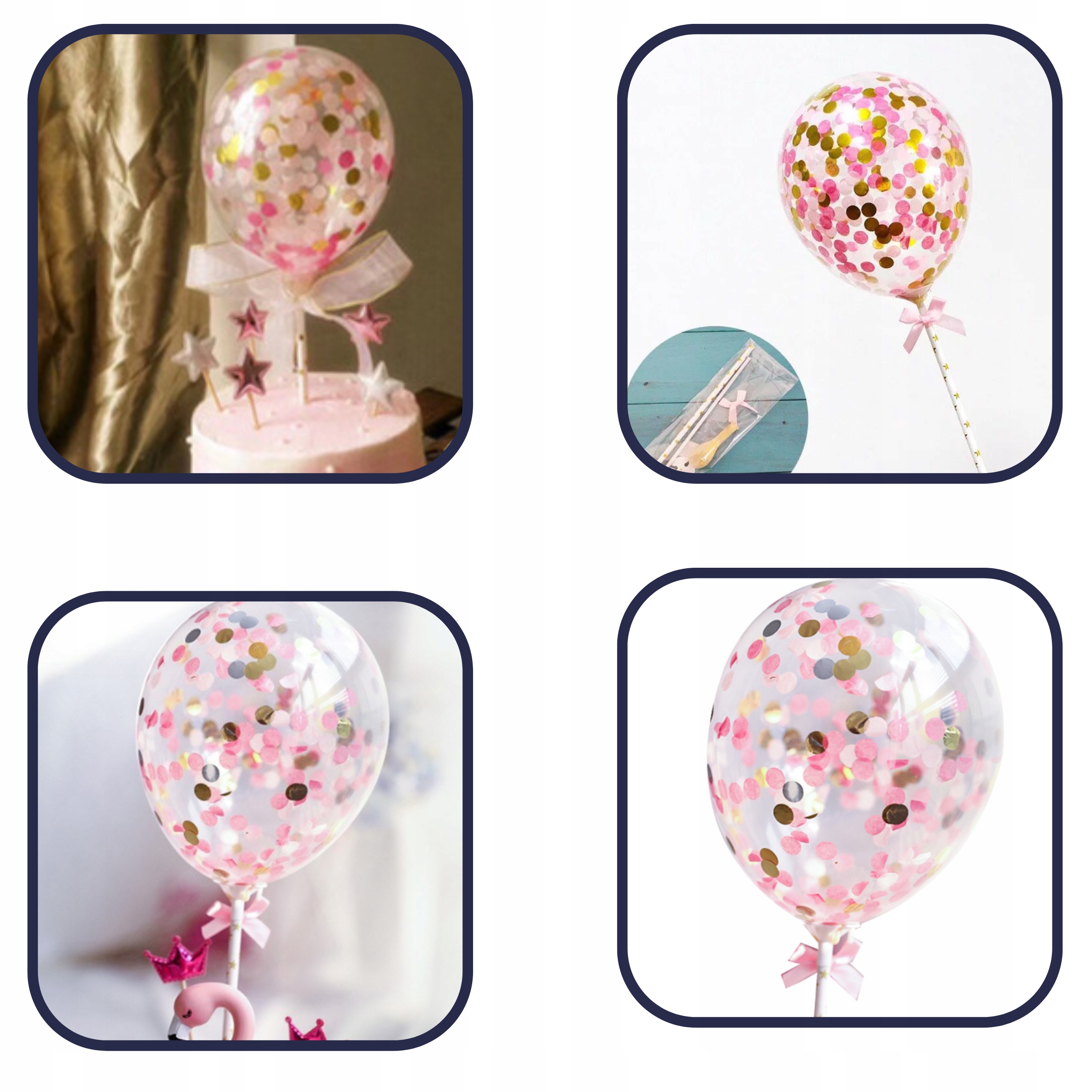 🎈Содержимое набора: 1 воздушный шар с конфетти, 1 розовый бант и 1 палочка-звездочка, 1 палочка с подставкой. Они выглядят нежно и элегантно, их можно использовать в качестве украшения торта.