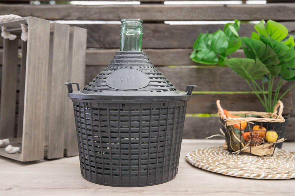 - 20-литровый баллон в корзине, безусловно, является самой распространенной и проверенной посудой для брожения вина, ликеров, меда или пива в домашних условиях. Благодаря специфической форме баллона в него можно удачно поместить определенное количество начинки, при этом имея возможность плотно закрыть его благодаря зауженному горлышку