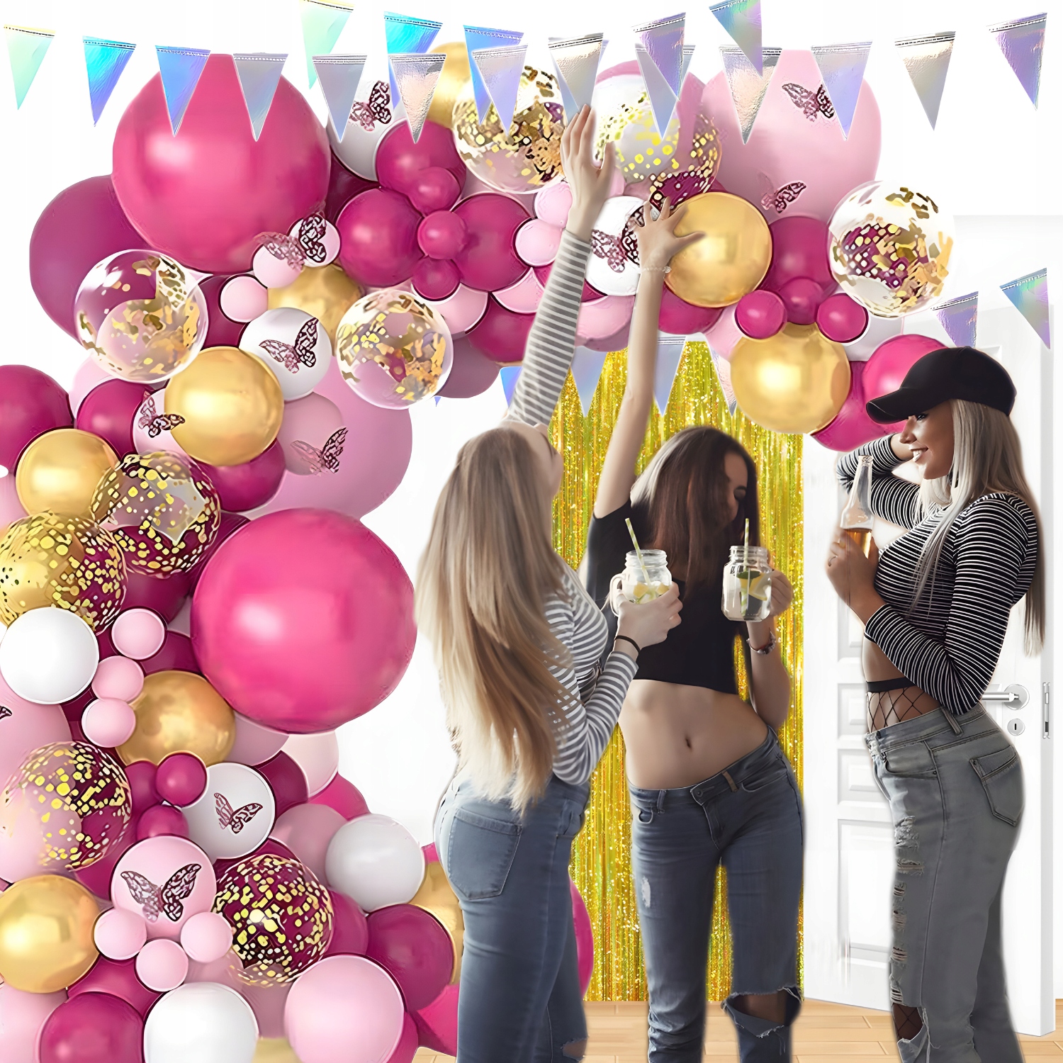 также включают в себя 12 декораций, имитирующих бабочек в розовом золоте. Бабочки легко установить, а их цвета отлично сочетаются с набором и дают уникальный эффект. Гарленда на воздушном шаре будет выглядеть элегантно и необычно