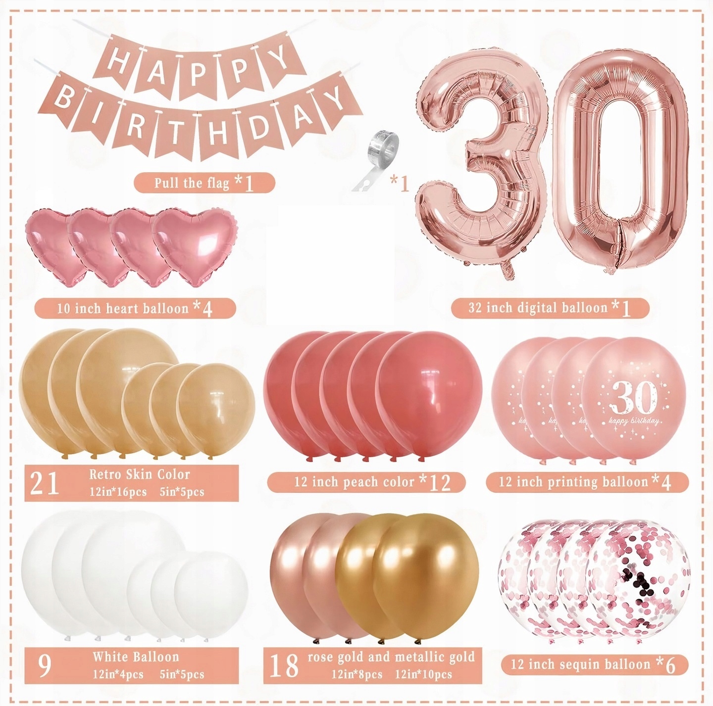 ПОВІТРЯНІ КУЛІ ГІРЛЯНД НАБІР ДЕКОРАЦІЙ ПОВІТРЯНИХ КУЛЬ НА 30 ДЕНЬ НАРОДЖЕННЯ ROSE GOLD XXL