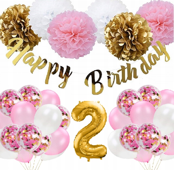 ШАРИКИ Набор украшений на день рождения 2 ЛЕТ РОЗА