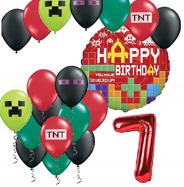 Воздушные шары набор на день рождения 7 лет пиксели ТНТ