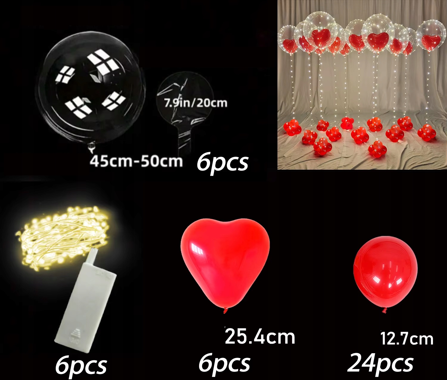 Создайте уникальную атмосферу с помощью нашего полного набора декоративных шаров, который идеально подходит для Дня святого Валентина, дней рождения, юбилеев, свадеб или девичников. Благодаря сочетанию прозрачных шаров с сердечками, красных шаров и нежной светодиодной подсветки ваш декор будет похож на сказку!