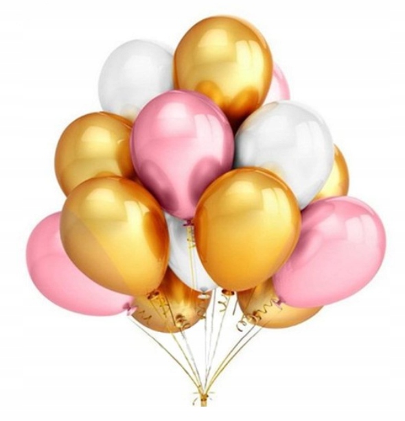 - Шарики с жемчугом золотистого, розового и белого цвета, диаметр 23 см, 20 шт.