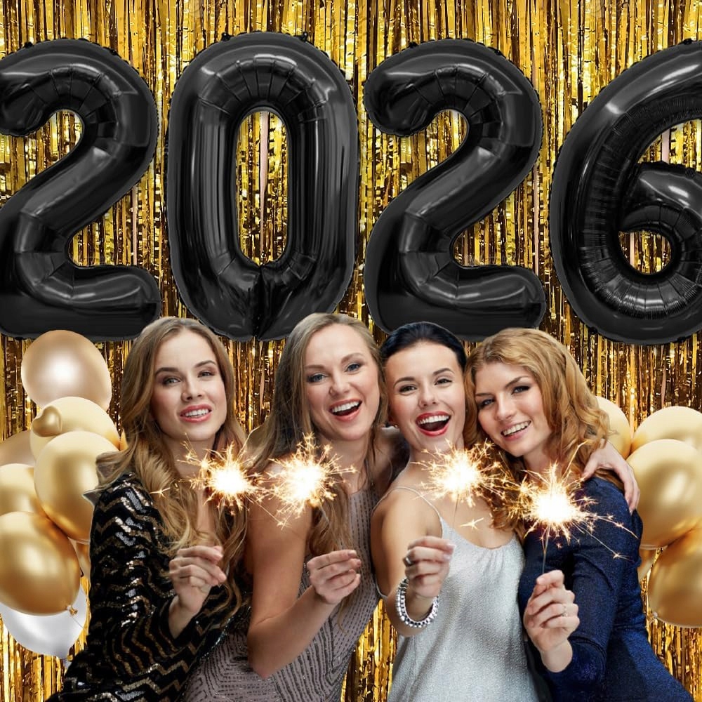⭐️Шарики с цифрами из фольги, чёрные 2026(высота одной цифры около 40см)