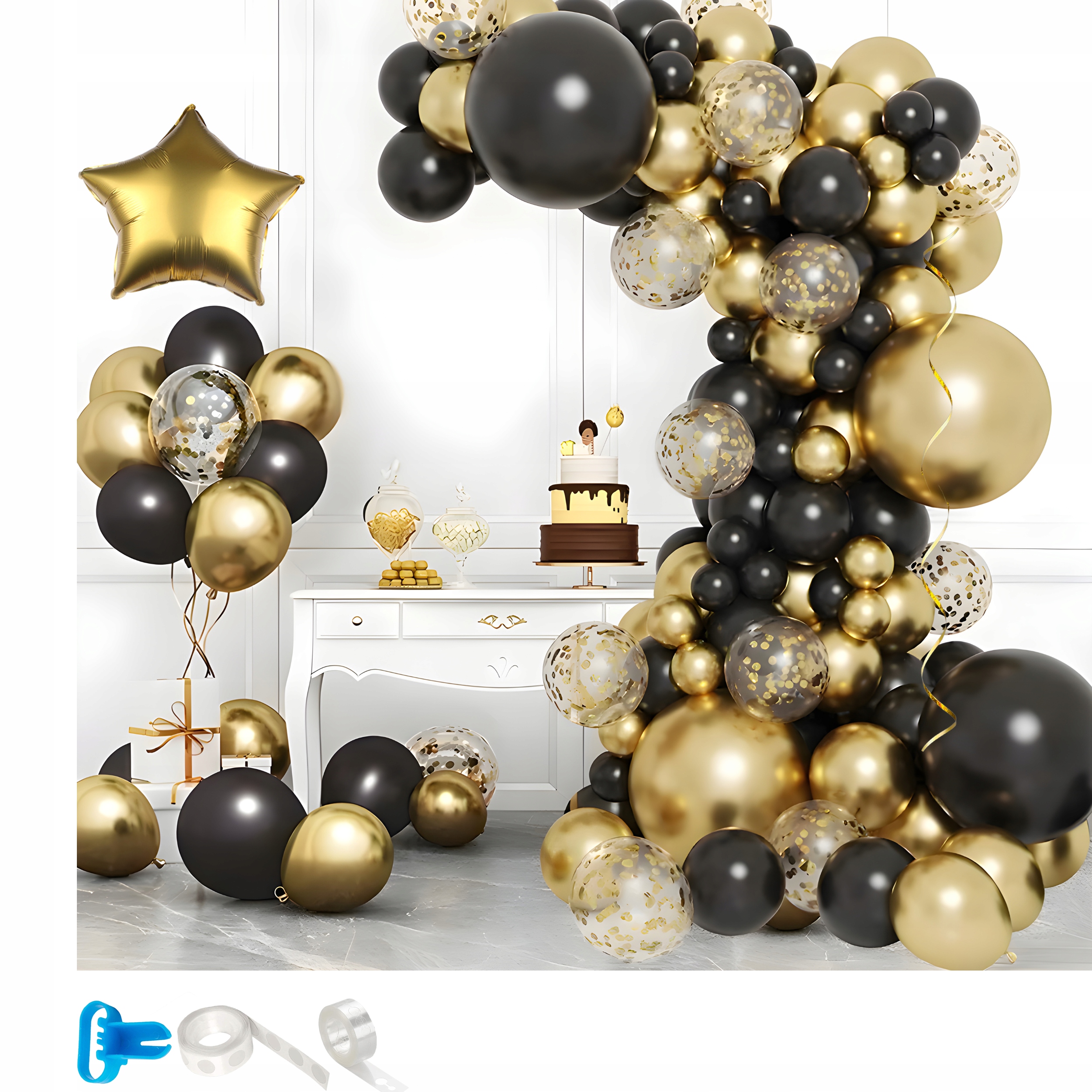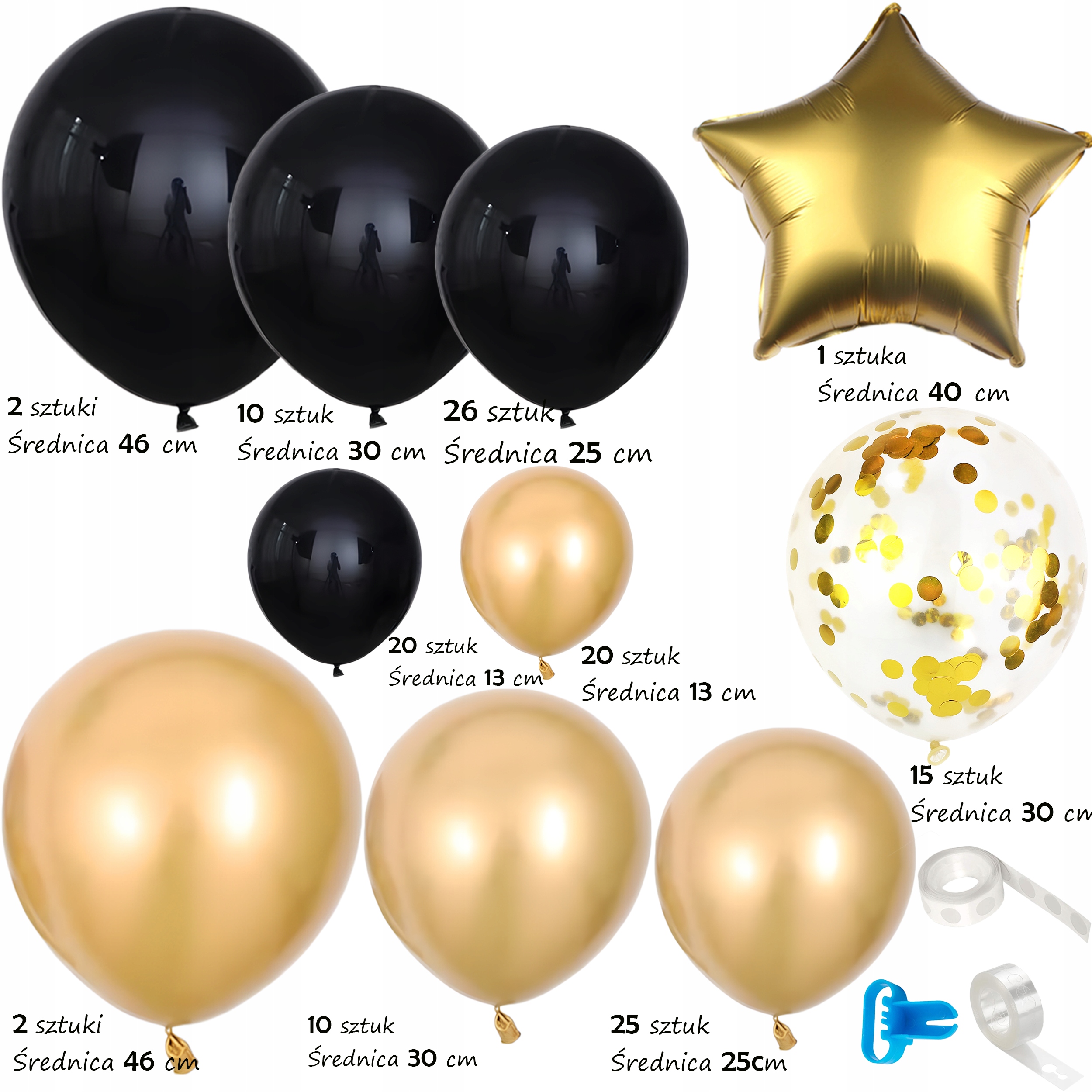 • 130 шт. черные и золотые шары, диаметр от 13 см до 46 см.