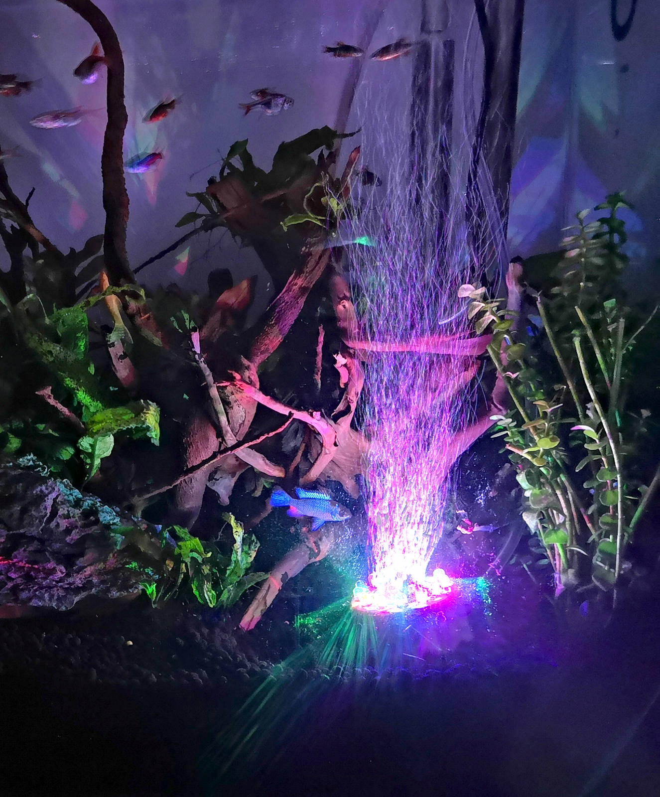 Воздушные камни серии HLED имеют подсветку светодиодами, что дополнительно подчеркнет неповторимую атмосферу в вашем аквариуме или подсветит аквариум в ночное время.