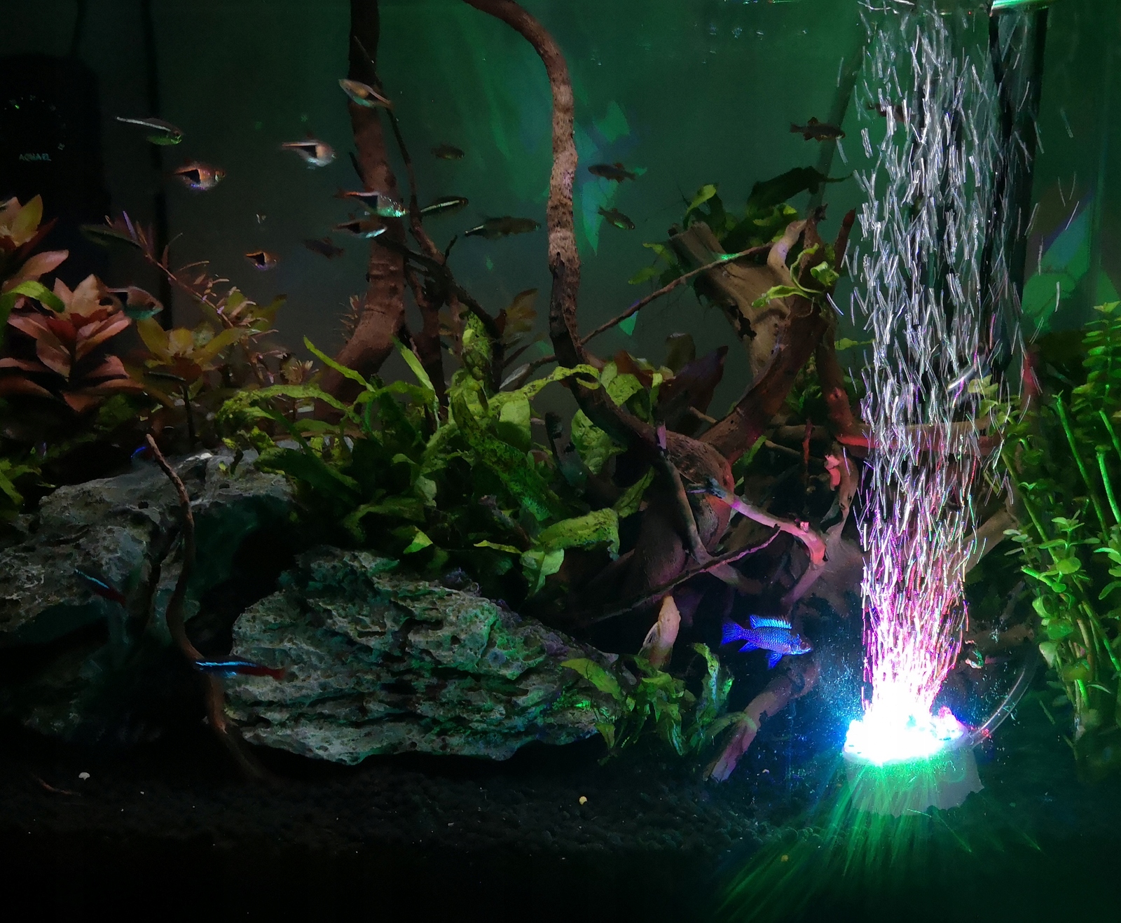 Воздушные камни серии HLED имеют подсветку светодиодами, что дополнительно подчеркнет неповторимую атмосферу в вашем аквариуме или подсветит аквариум в ночное время.