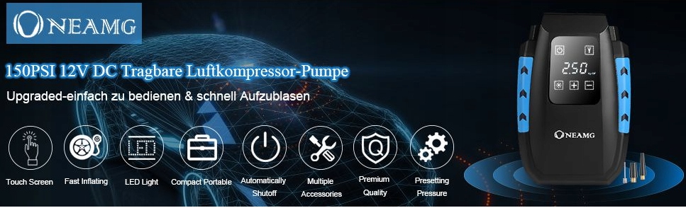 ✅ Представляем воздушный компрессор OneAmg 12 В,портативный насос для накачивания шин с цифровым управлением сенсорный экран и автоматическое отключение.