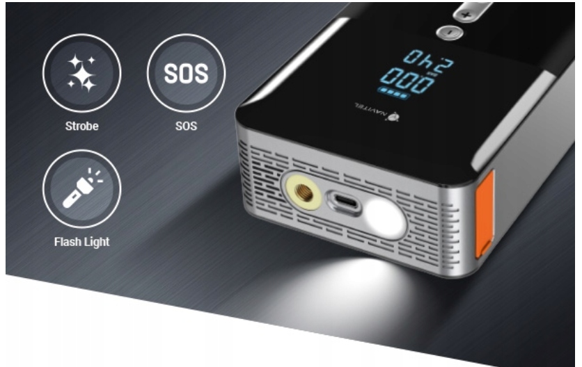 Это многофункциональное устройство, которое подкачает колеса, зарядит мобильные устройства и даже заведёт автомобиль при разряженном аккумуляторе.