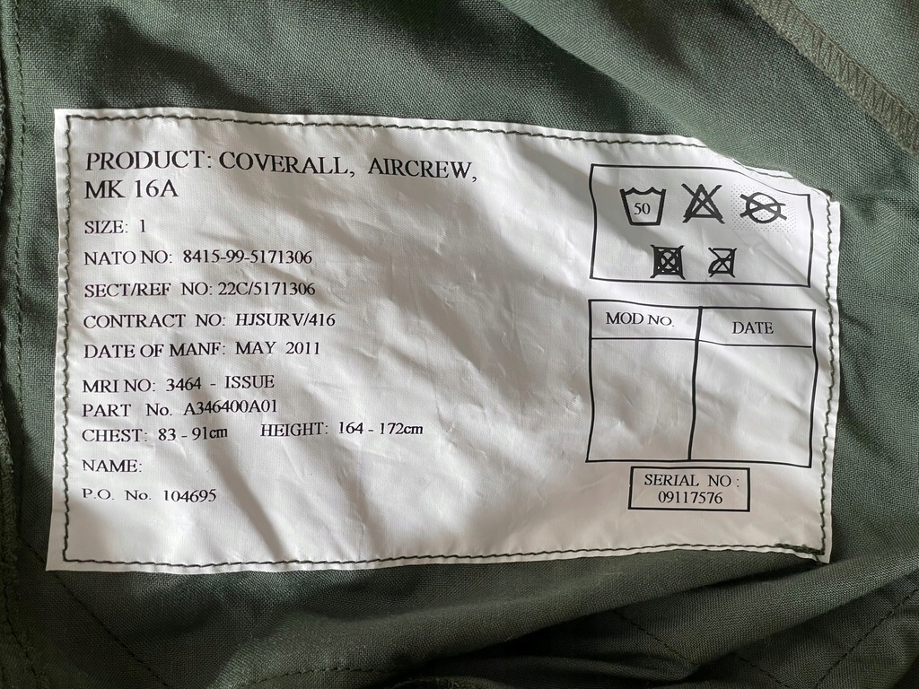 Воздушный костюм от английской армии Oliv R 8 Mk 16a
