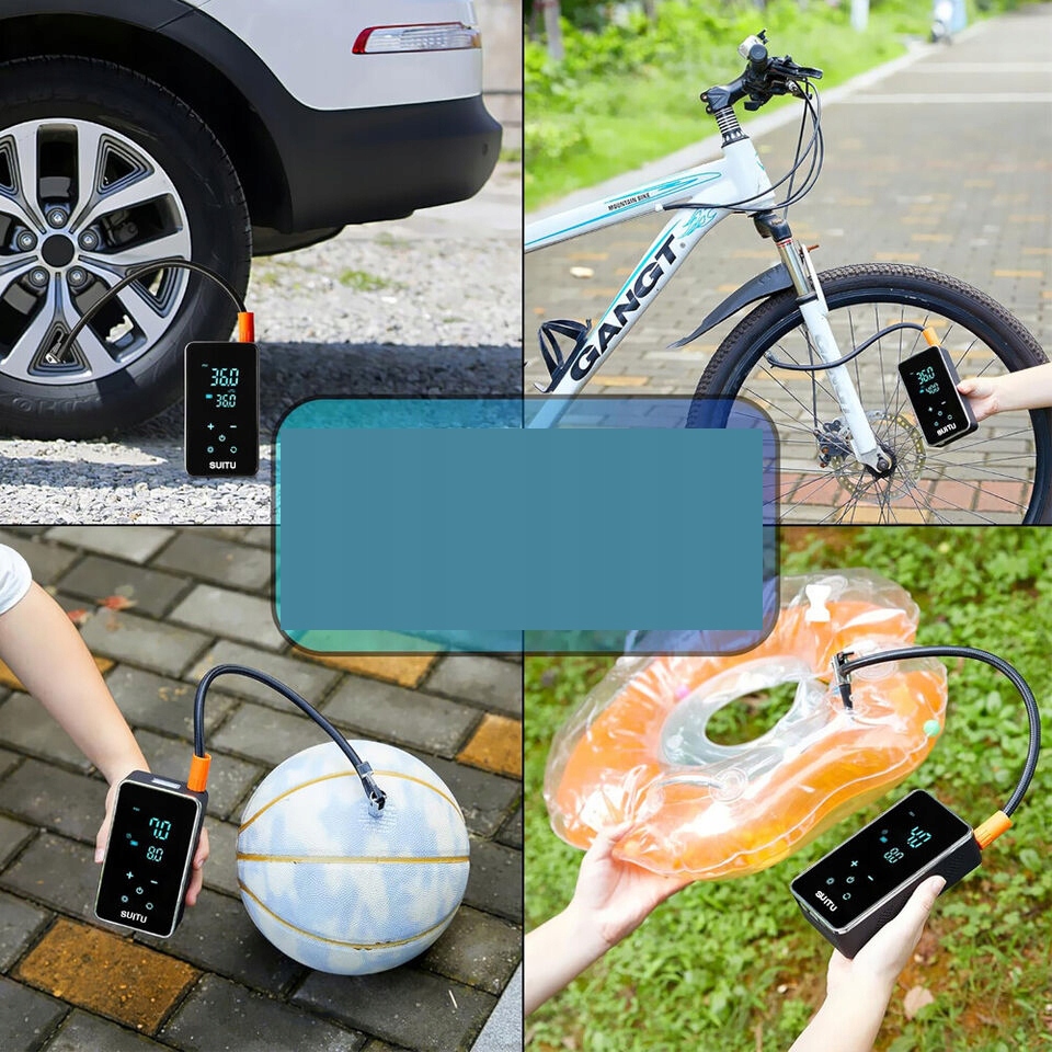 najnowsza spręraka powietrza do pompowania opon z najwięksą baterią 8000 mah na rynku, stale stale pompowć 6 opohody opohody opohody opohod Пелним Наладованиу. Максимальная поддержка давления 150 фунтов на квадратный дюйм/10,3Bar обеспечивает легкую перекачивать весь автомобиль, велосипед, мотоцикл, шарики, плавательные колеса или другие предметы в течение нескольких минут. Благодаря улучшению кабеля питания, даже если батарея разряжается, вы все равно можете надуть шины напрямую, не беспокоясь о каких -либо аварийных ситуациях.