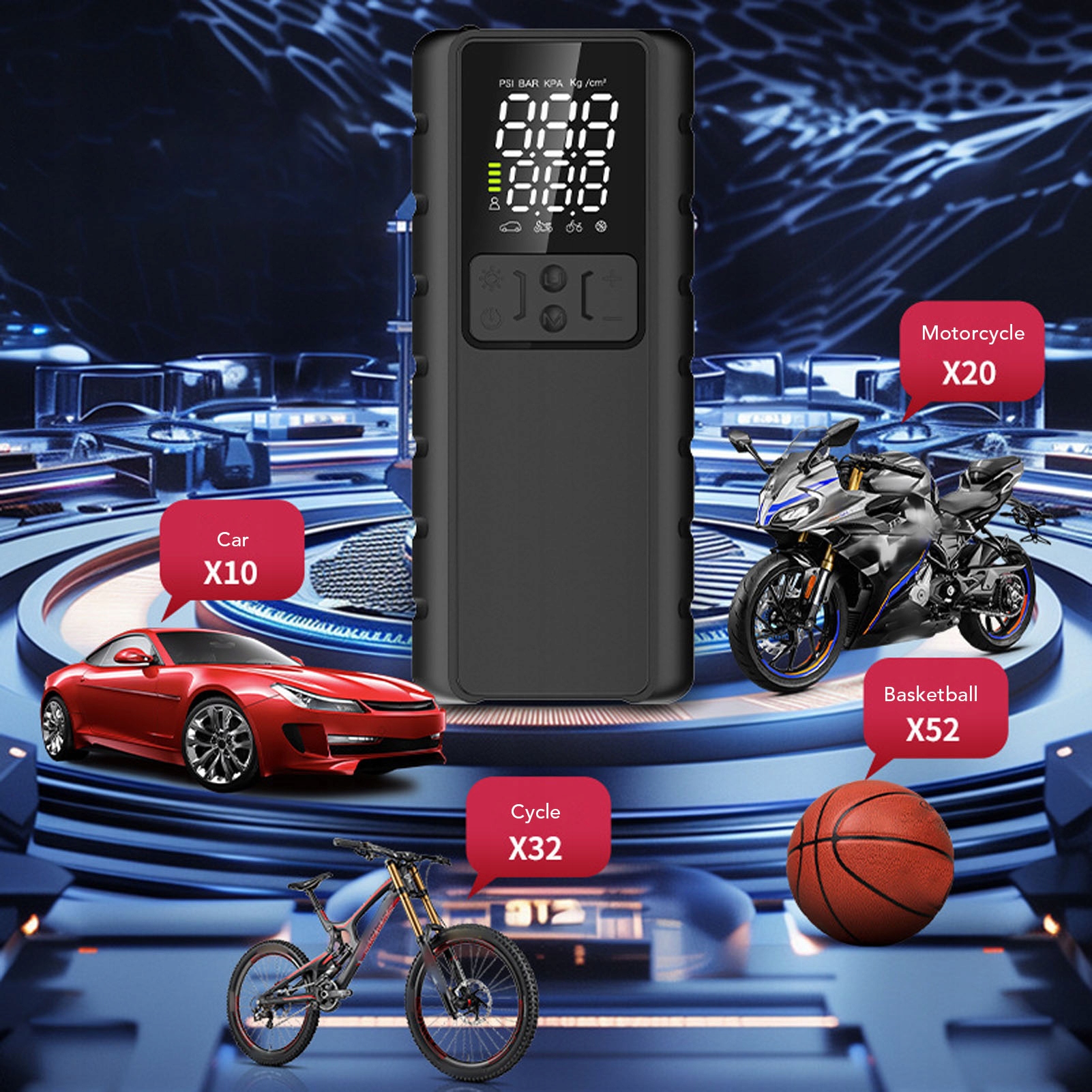 2. [Универсальное использование] Этот портативный воздушный насос подходит для перекачки автомобильных шин, мотоциклов, велосипедов, шариков и других надувных объектов, со скоростью на 25% и более безопасной автоматической функции выключения.