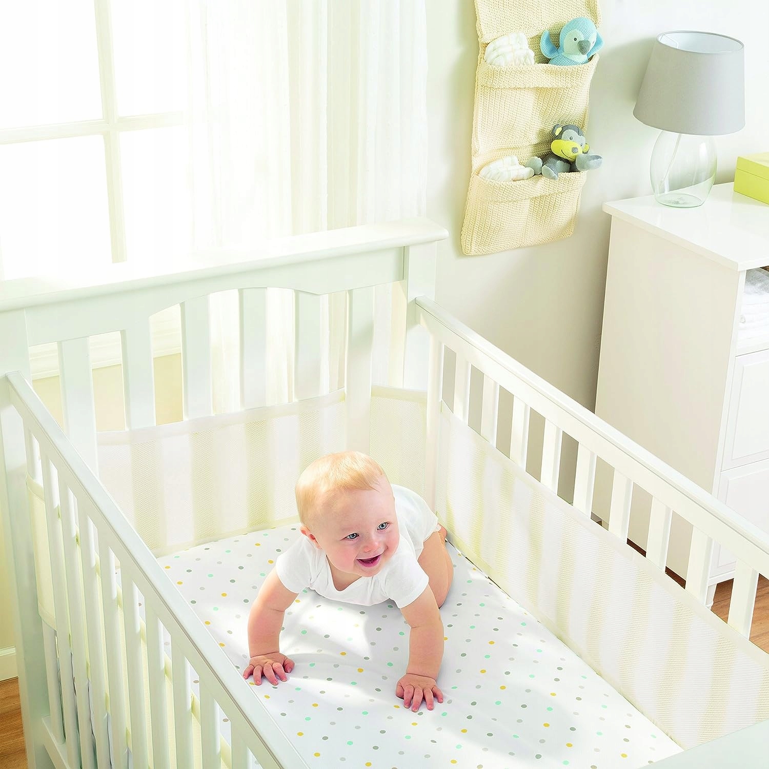 Защитная ткань Breathable Baby полностью пропускает воздух. Изготовлен из мягкого сетчатого материала. Он всегда обеспечивает максимальный поток воздуха, снижая риск перегрева.Он защитит вашего ребенка от ненужного застревания рук или ног в перекладинах и от ударов головой. Складной материал не позволяет детям использовать бампер, чтобы выйти за пределы кровати.