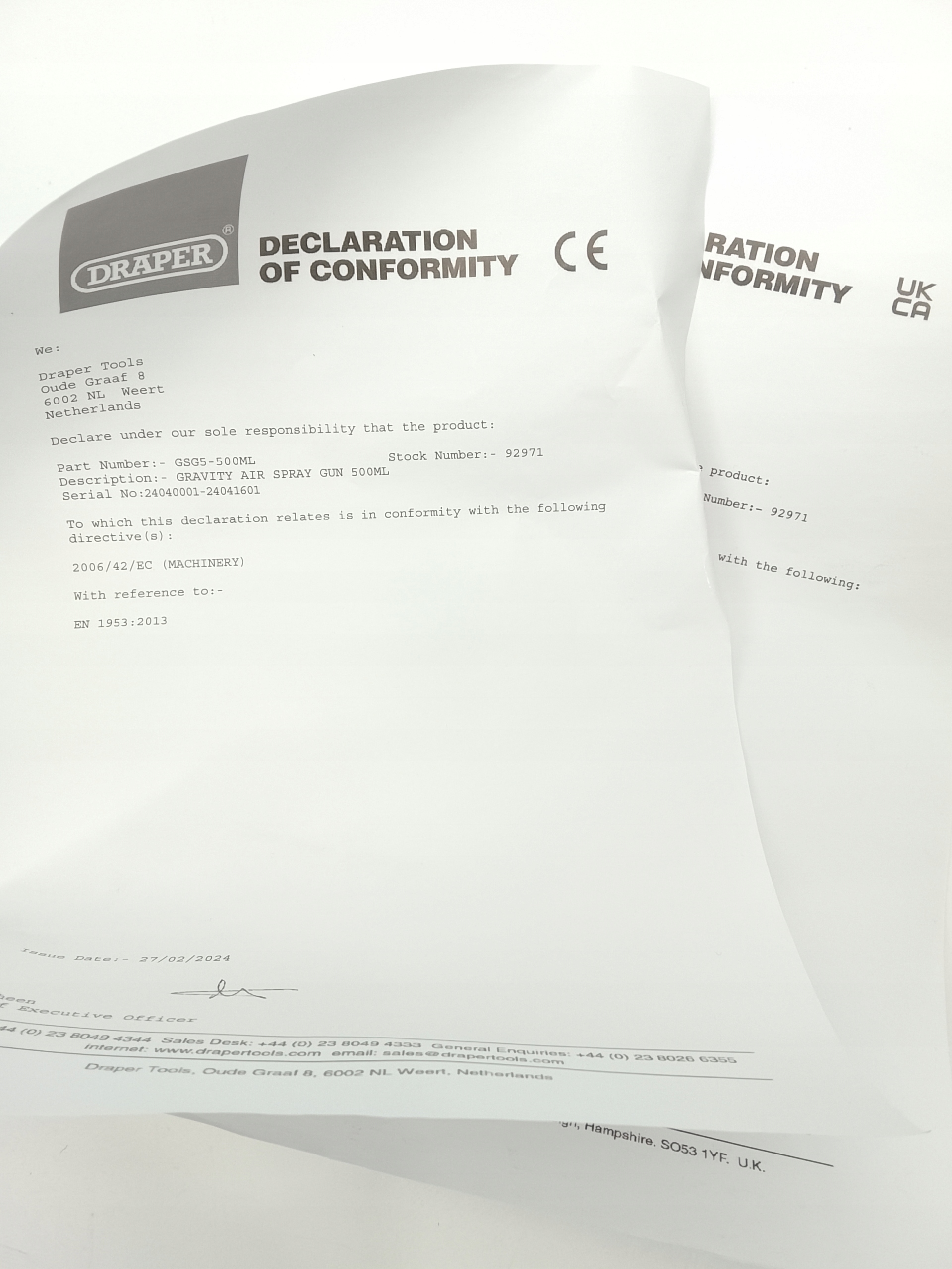 Пистолет-распылитель Draper Air 500мл с регулировкой расхода