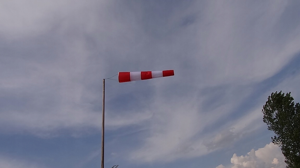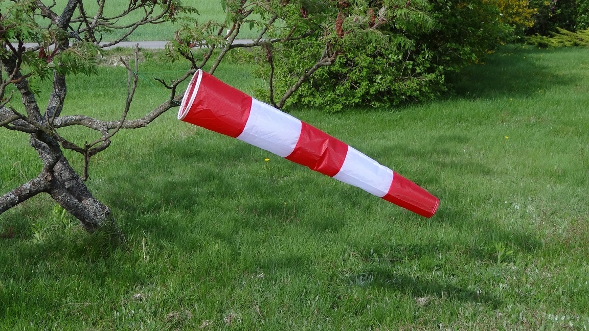 Рукав, указывающий направление ветра и позволяющий приблизительно оценить его прочность цветбелый и красный.