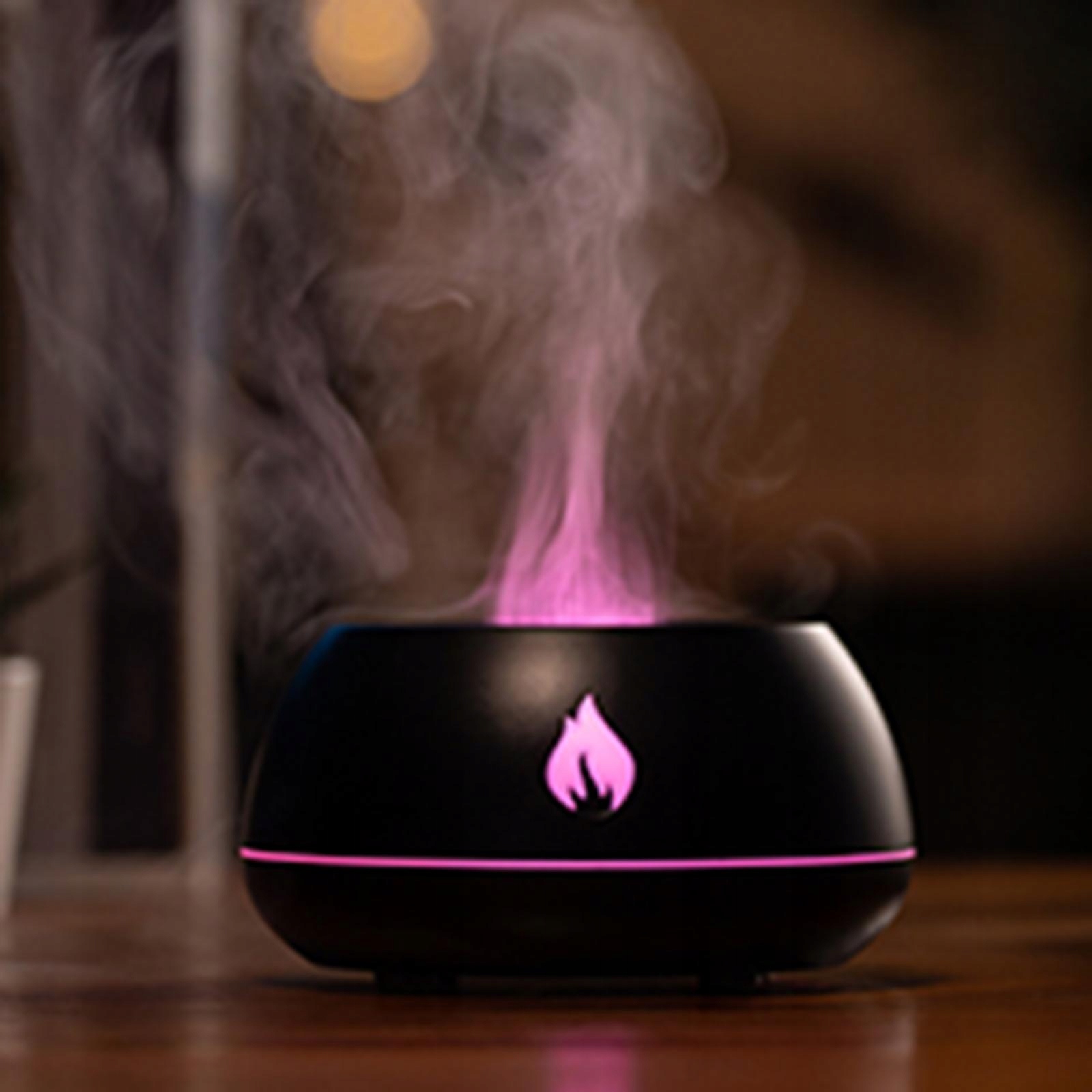 Увлажнитель воздуха с имитационным пламенем и холодным туманом, аромат диффузор, оснащенный USB, Black