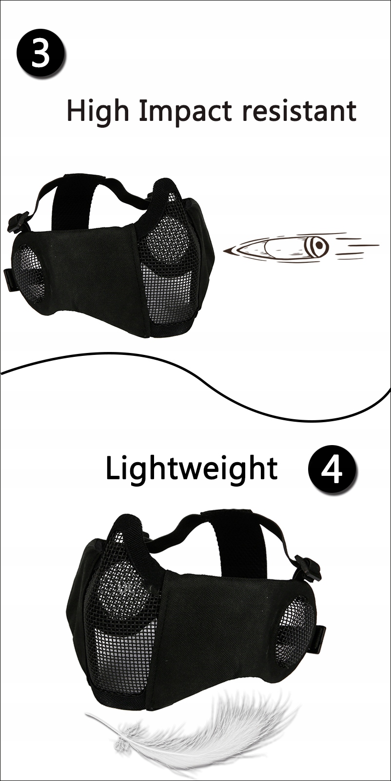 Материал маски: нейлон 1000D и низкоуглеродистая сталь.