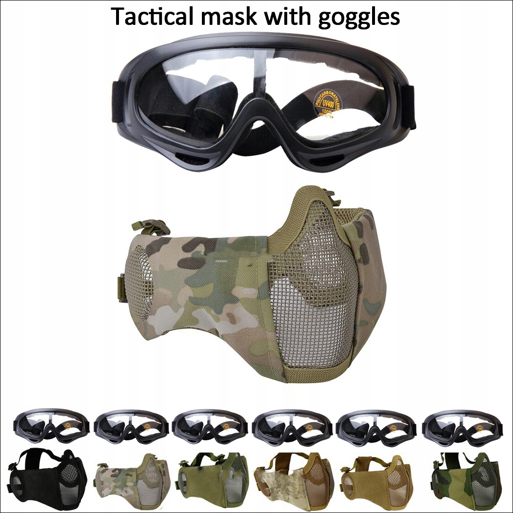 Маска для страйкбола на половину лица с очками Защитная маска из стальной сетки Low-E для стрельбы Маска для пейнтбола CS для страйкбола Спортивная маска для очков