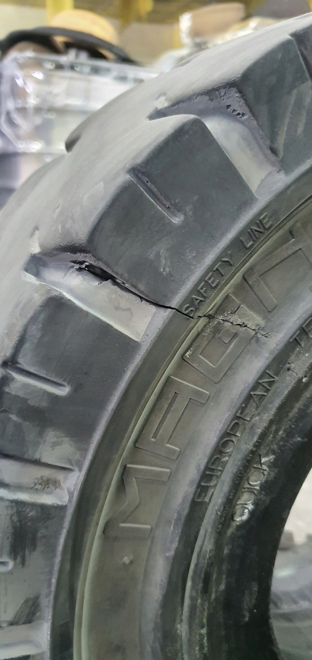 один из шин имеет небольшой повреждение на плече и стороне. фото.