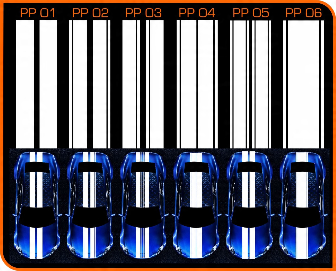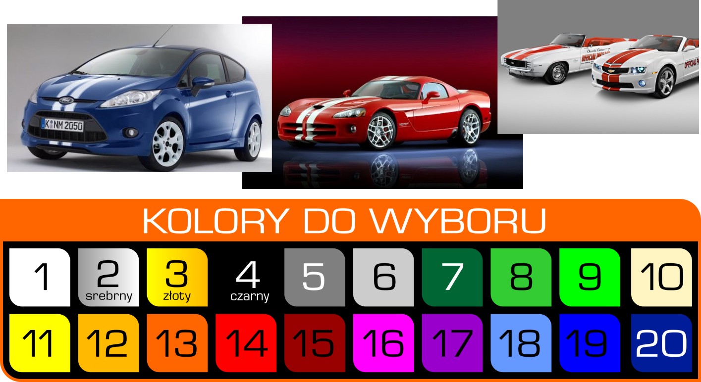 Предлагаем комплект ремней общими размерами 360 х 29 см, разделенных на три сегмента по 120 каждый. см х 29 см или два сегмента 180 х 29 см. Данное количество позволяет оклеить любой легковой автомобиль (капот, багажник, крышу).