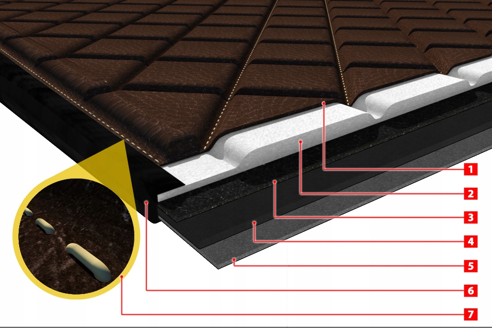 Коврики отделаны качественными переплетами известных немецких брендов. Только использование машин такого типа может обеспечить идеальное направление подгиба, что влияет на ровную и эстетичную отделку краев ковра.